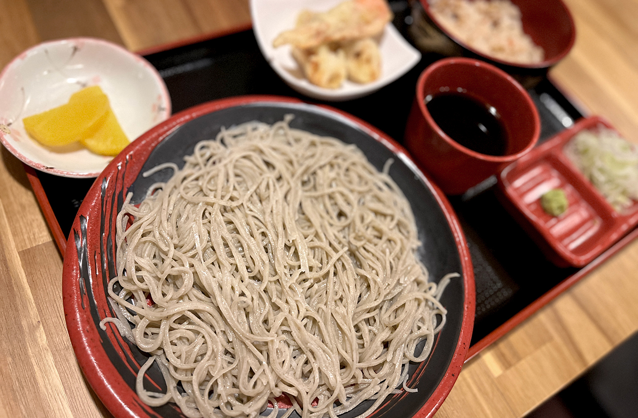 国産そば粉と山芋にこだわった風味豊かな手打ちそばは、喉越し良く香り高く、天ぷら・炊き込みご飯・香の物・そばプリンが付いた「蕎麦ランチ」から、サクッと衣のかつ丼とのセットまでバリエーション豊富。