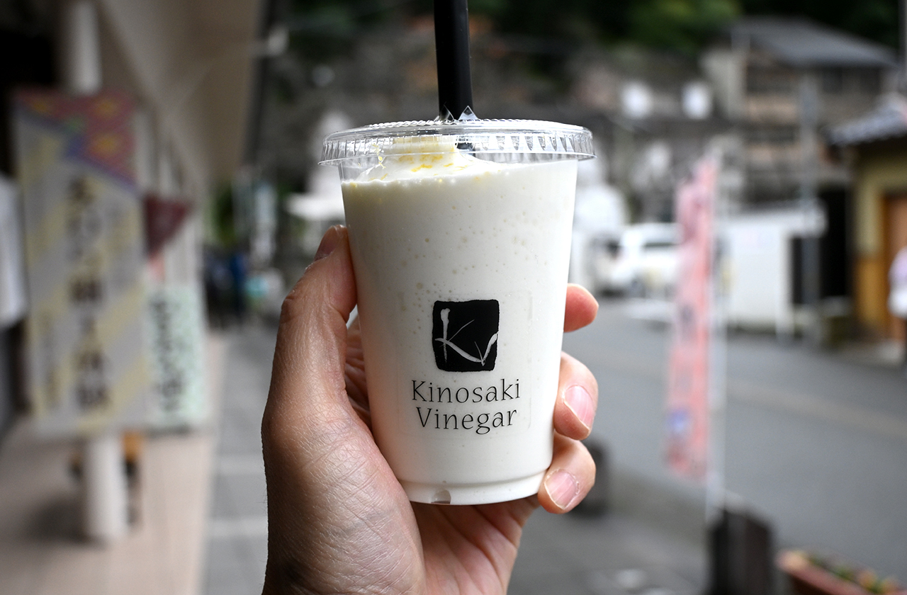 歩き疲れたタイミングでビネガードリンクを飲むと体がふっと軽くなるし、城崎の雰囲気とも相性がいいと思います。