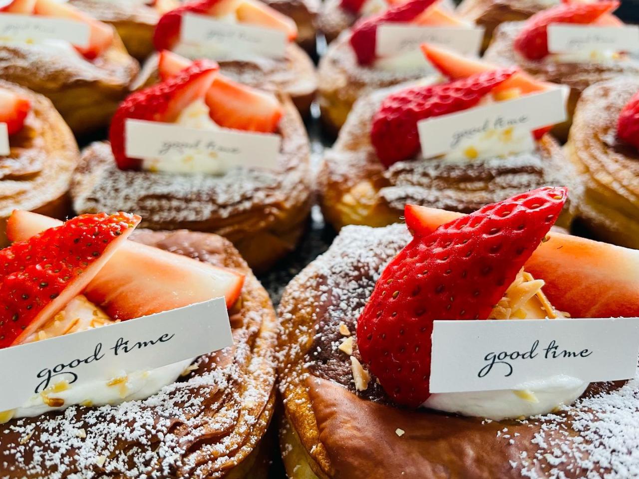 「きちゃりーな」様での委託販売のラインナップは以下の通りです。 ・クロワッサン ・ミルクジャムクロワッサン ・グラタンデニッシュ ・ブラウニー ・いちごクランブルタルト ・アップルタルト よろしくお願いいたします。