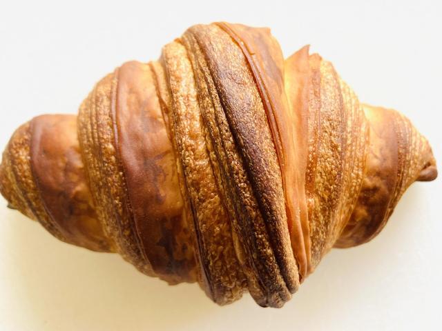 国産小麦、京丹後の牛乳(ヒラヤミルク).、塩(翁の塩)を使用 前日より仕込み低音長時間発酵させた生地にバターを折り込み、サクサクのパイ状に仕上げた1番人気商品