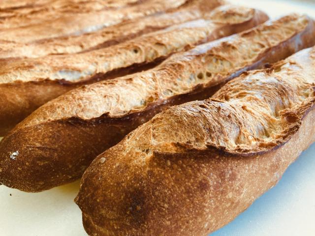 北海道産小麦、翁の塩、水、酵母のみで作ったしっかり旨味を味わえるハードなバゲット