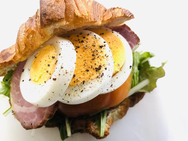 地元の野菜、自家製ハムやソーセージを使用したクロワッサンのサンド