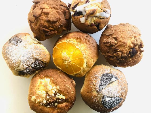 全粒粉を配合したバターの香るマフィン 季節の素材をトッピング