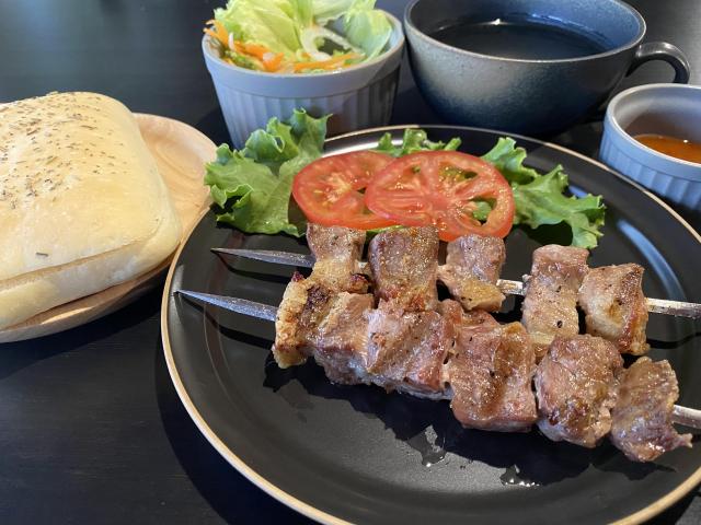 コースは3種類 それぞれに前菜、スープ、サラダ、パン、デザート、コーヒー付き A コース 2500円 和牛バラ肉のアサード、国産ポークロースのアサード B コース 3500円 和牛バラ肉のアサード、和牛トンビのアサード、国産ポークのアサード C コース 4500円 和牛バラ肉のアサード、和牛トンビのアサード、国産ポークのアサード、輸入牛のヘレ肉のアサード