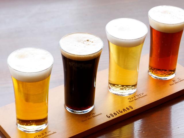地ビールは4種類 グラスまたはジョッキでお楽しみ頂けます。写真はグラスです。