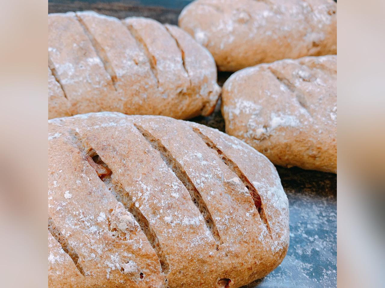 週末もたくさんのお客様にお越しいただき、誠にありがとうございました。 たくさんのパンたちが旅立って行きました。 写真はくるみのライ麦パンです。 ずっしりと、小麦の風味をしっかりと感じるパンです。 スライスしてトーストしていただくと、カリッとした食感もお楽しみいただけます✨ 見かけた際は是非お試しください!