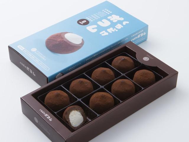 本格的なチョコと自然で雑味のない生クリームで作ったクリーミーで濃厚な生クリームトリュフ。柔らかいガナッシュの中から、さらに柔らかなトロトロの生クリームが現れる『くちどけポコム』。