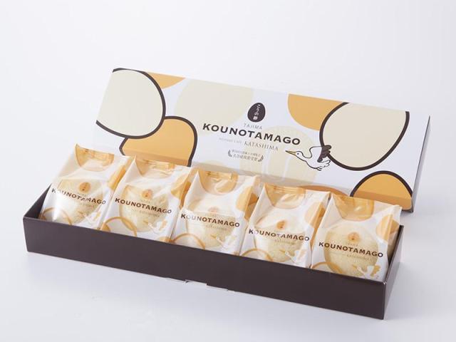 ~幸せを運ぶ鳥 コウノトリ~ そんな郷土の宝を想ってお作りした「こうの卵」は、人とコウノトリの共存を願ったお菓子です。新鮮な卵とミルクをつかってフワフワしっとり焼き上げた優しい味わいをお楽しみください。