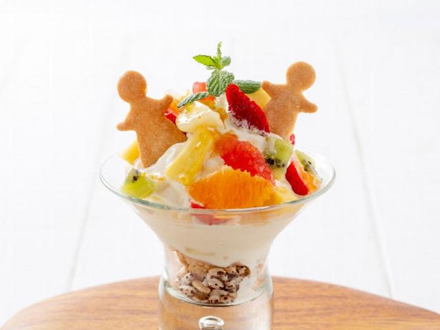 ミルクの風味とコクを持つ最高級プレミアムソフトクリームを使ったミニパフェ。 季節のフルーツと可愛らしいサブレを添えた、お子様にも安心してお召し上がりいただける可愛いミニパフェです。