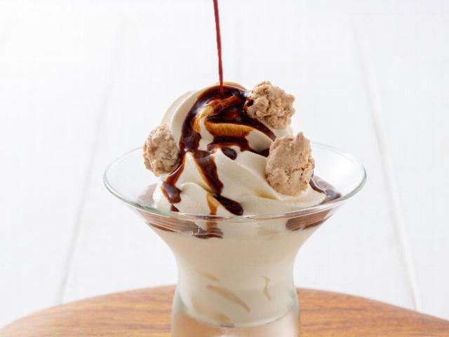 プレミアムソフトクリームにホクホク食感の栗となめらかなマロンクリームをトッピングしたテイクアウト限定スイーツ。