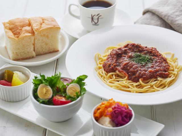 定番と日替わりの2種類よりお選びいただいたお好みのパスタにサラダ、フォカッチャとコーヒーがセットになったランチタイム限定のお得なメニュー。 ランチタイム(11:30~14:00)