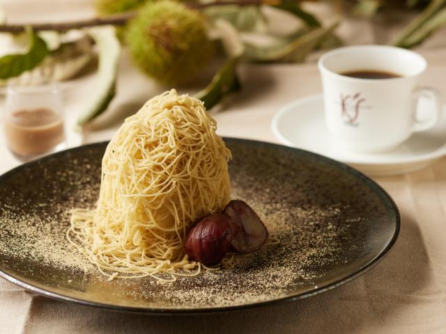 《販売時間》12:00~ ※コーヒー付 丹波栗の芳醇な甘みを繊細に仕立てた、出来立てのモンブラン。香ばしい黒豆きなこのメレンゲと、気品ある紅茶ソースが織りなす上質な余韻をお楽しみください。 ※品切れの際はご容赦ください。