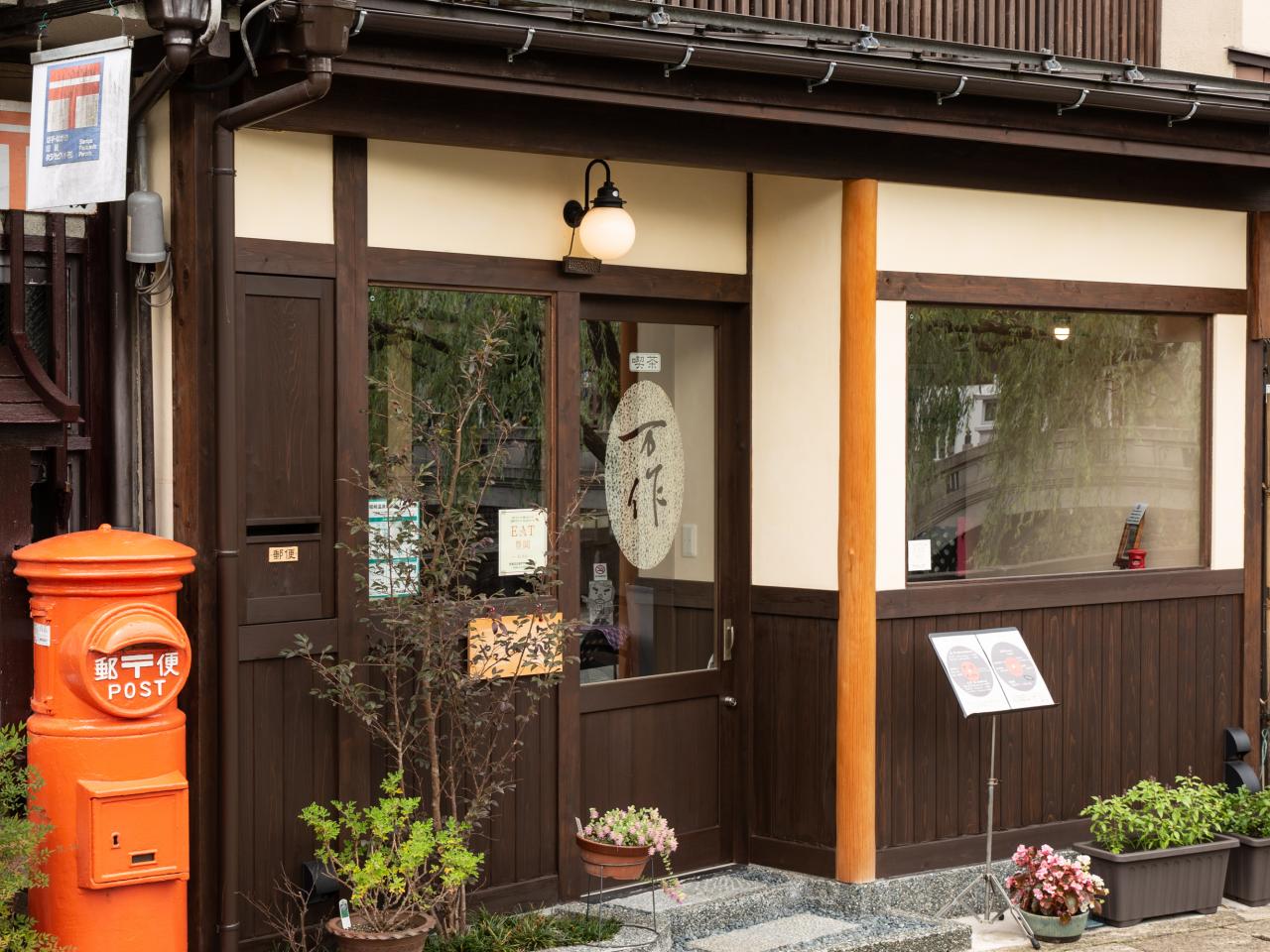 城崎温泉の真ん中を流れる大谿川沿いにある喫茶店です。