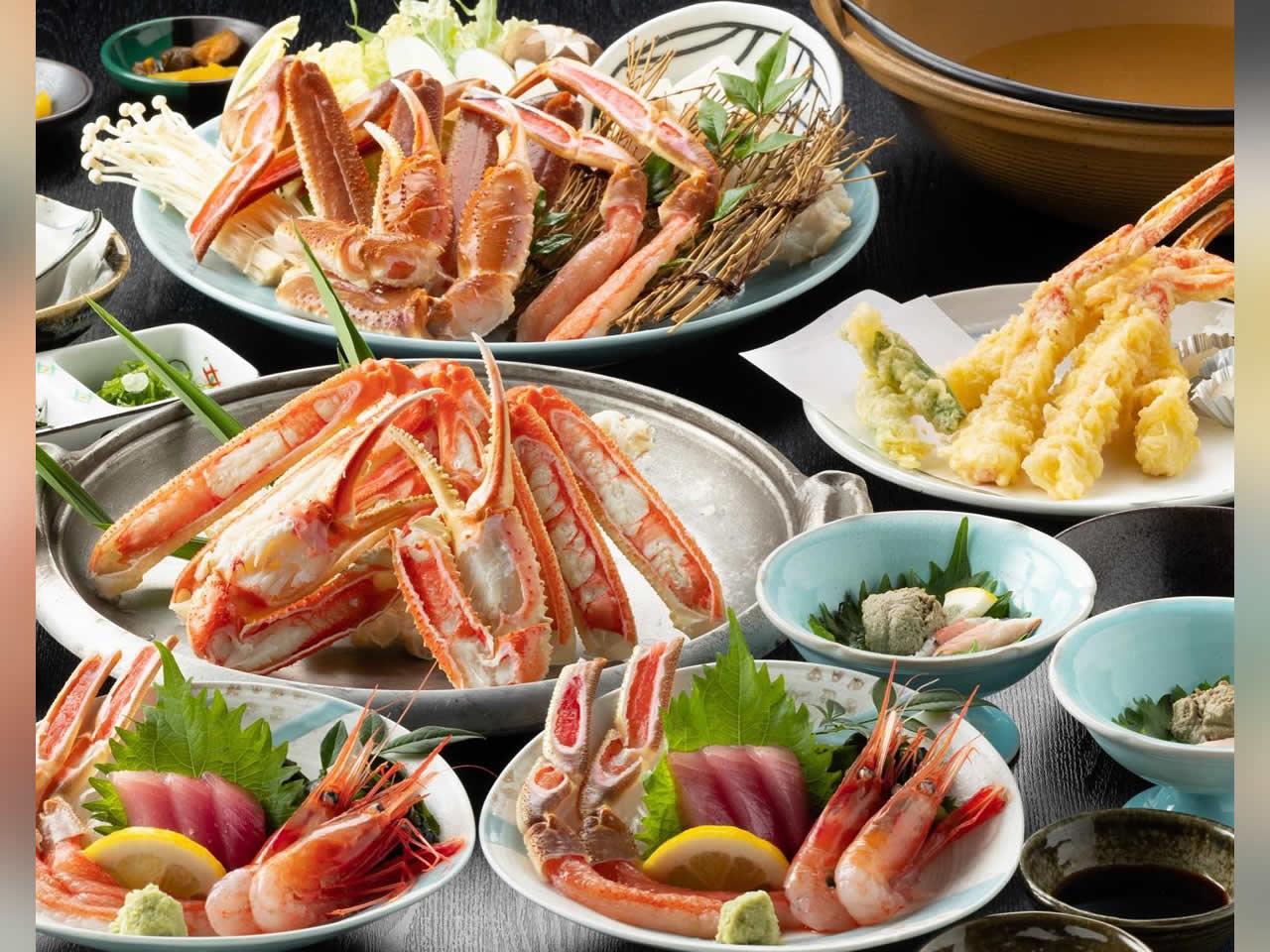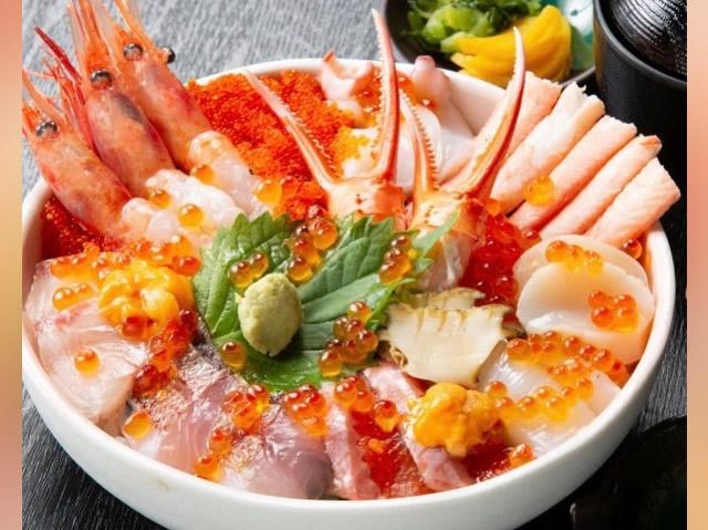 写真は海鮮丼プレミアム(3500円)、かにフルコース(12000円/1人前 2人前〜)