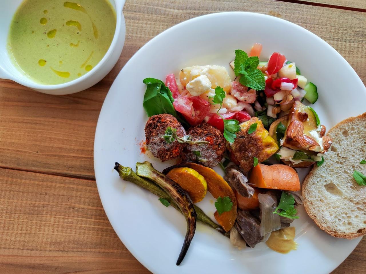 季節の野菜と鹿肉、ハーブのワンプレートランチ(お持ち帰りは要予約)。