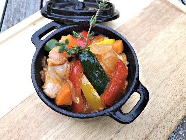 美食の街スペイン バスク地方の郷土料理。鶏肉とニンニク、野菜をたっぷり使用した素材の旨味をじっくり味わうお料理です。