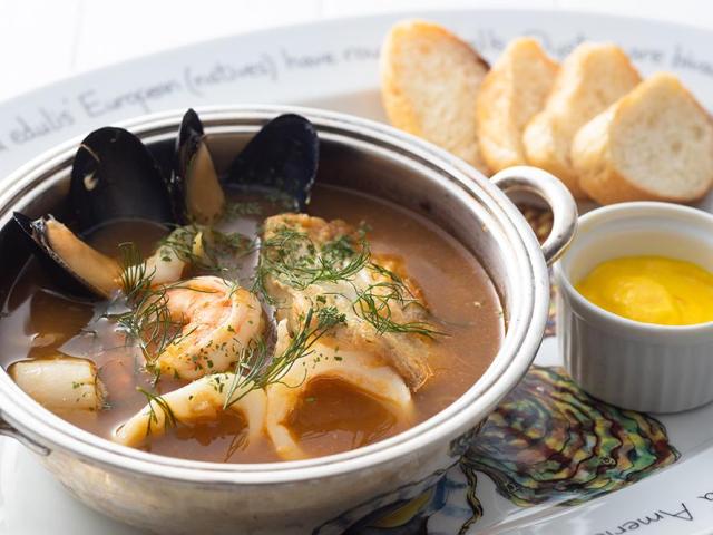 新鮮な魚介と香味野菜から取ったサフラン風味のお魚のスープをベースに天然魚、車エビ、イカ、帆立貝、ムール貝など加えたマルセイユ風。手間暇かけて丁寧に作られたブイヤベースはシェフこだわりの逸品です。