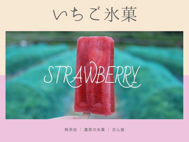 志ん屋でとれたイチゴを使った「イチゴ氷菓」 香り豊かで甘酸っぱい。果実も入っています。 5月下旬より販売予定。