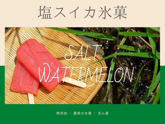 神鍋でとれたスイカを使った「塩スイカ氷菓」 ちょっぴりきいた塩味がスイカの甘みを引き立たせます 7月より販売予定