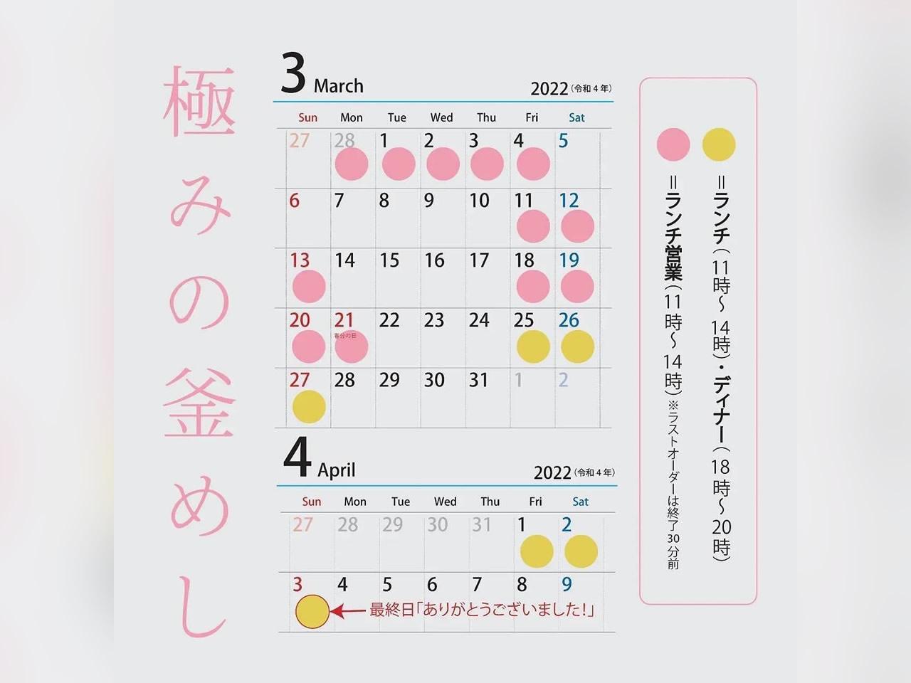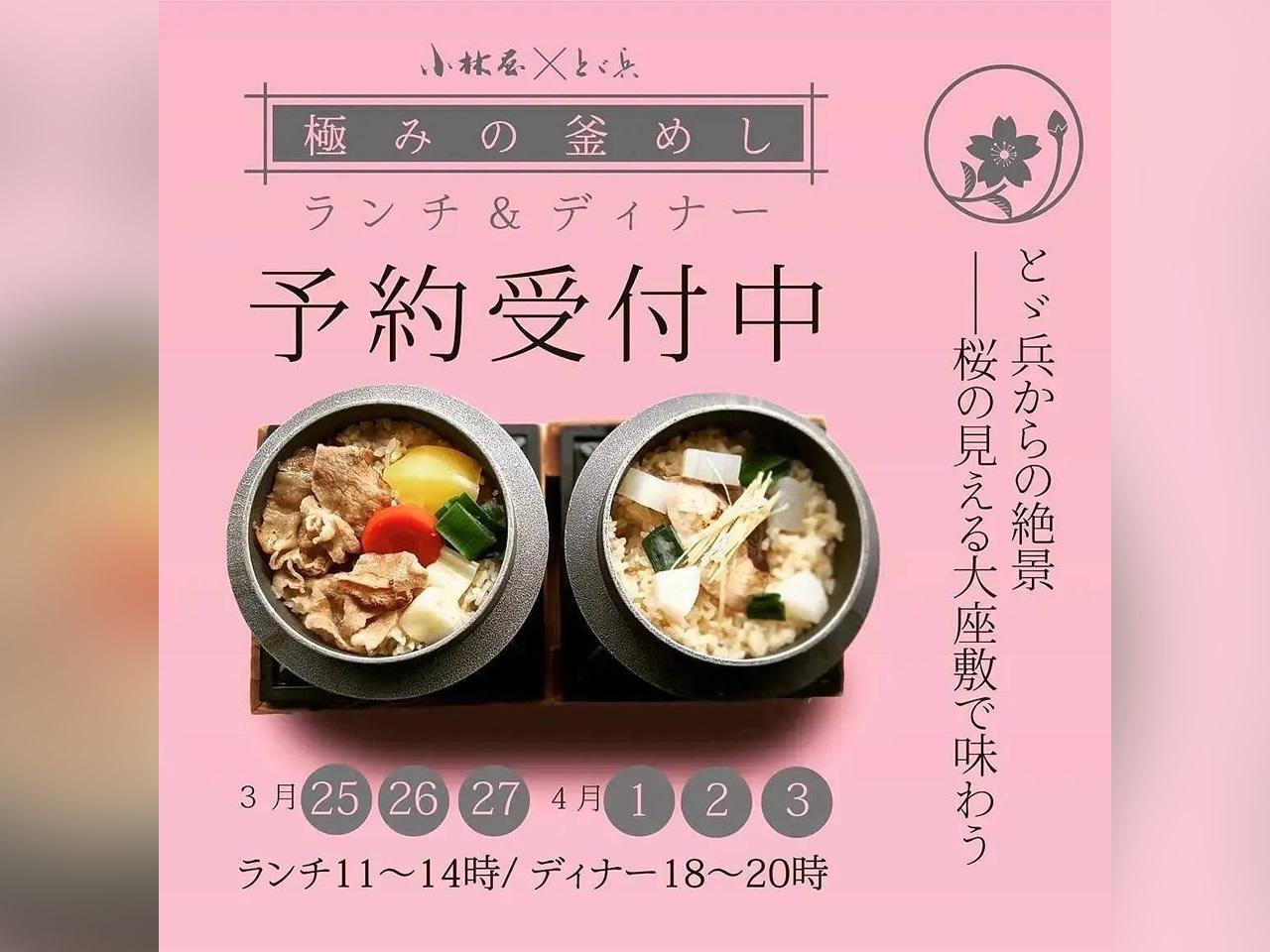 そこで、とど兵の大座敷でゆったり安全に花見をしながら、美味しい釜めしを食べていただこうと、下記の日程でランチ&ディナー営業をすることにしました。