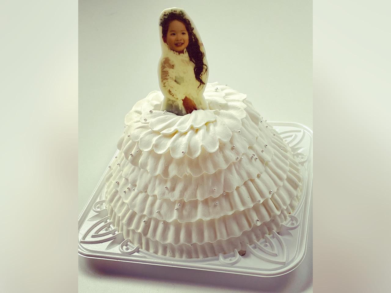 とっておきのお写真一枚を食べられるプレートにしてケーキのトップに飾れば…本物のドレスみたい!と大好評!!